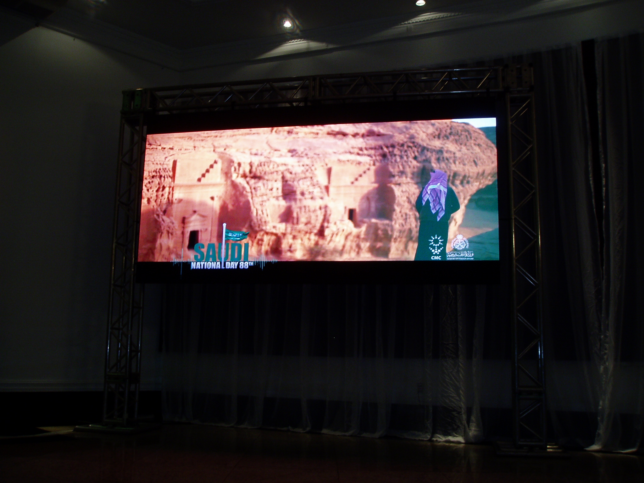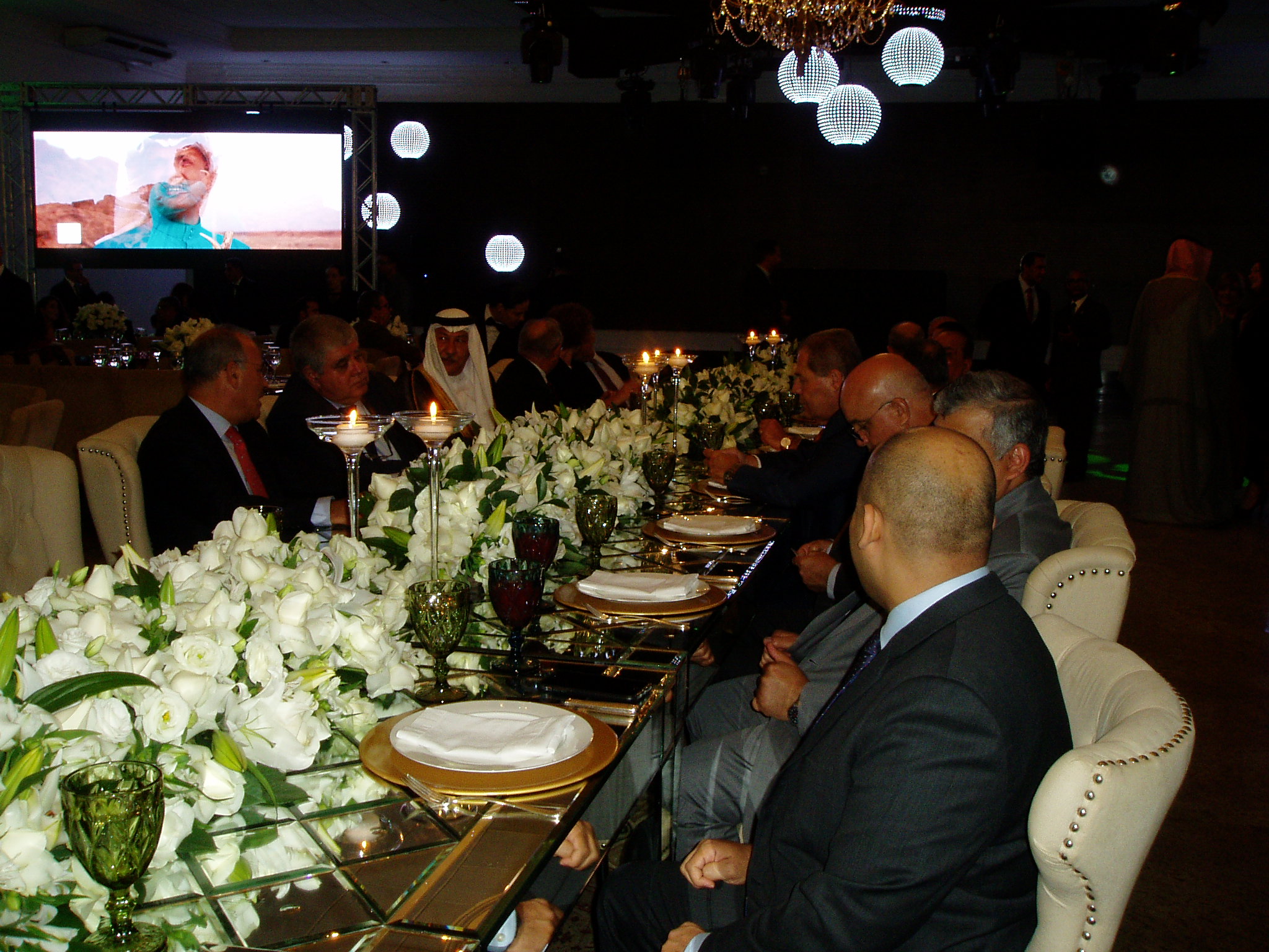 Two large screens installed in the hall continued to show beautiful images of Saudi Arabia and everyone enjoyed the dinner, set with typical songs of that beautiful country.
