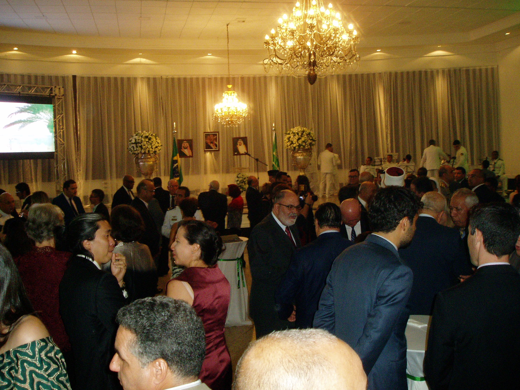 The guests congregated in the social halls of the event house, where a screen showed beautiful Saudi Arabia presentation images. Among those present there were ambassadors, foreign and Brazilian diplomats, civilian and military attachés, businessmen, members of the Arab community in Brazil and personalities from the society of Brasilia.